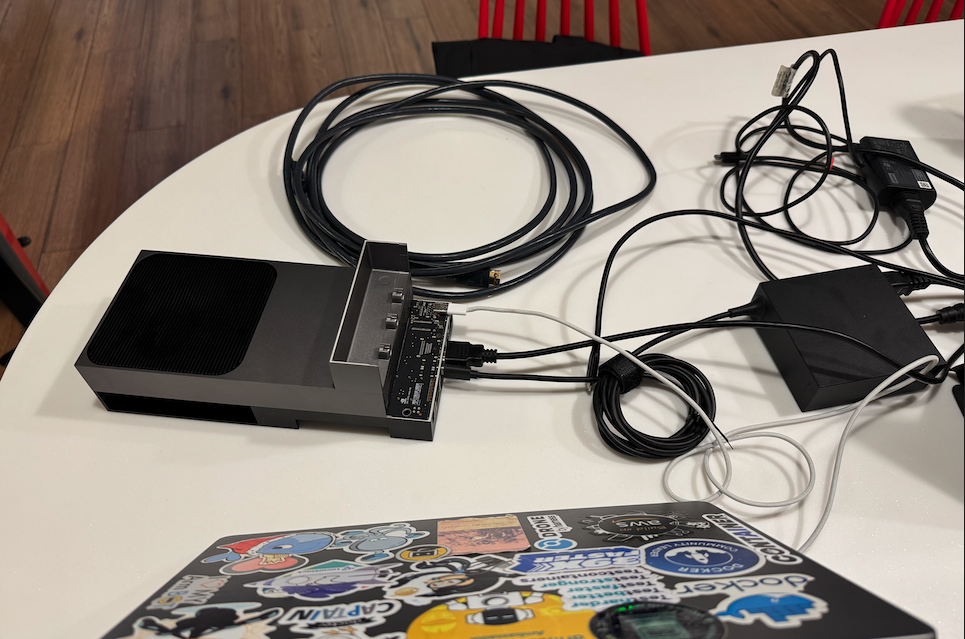 The main speakers are busy presenting via Zoom and Microsoft Teams, all the display equipment is tied up, and these students are standing there with their cutting-edge Jetson Thor looking increasingly worried. Their demo slot is in 15 minutes.