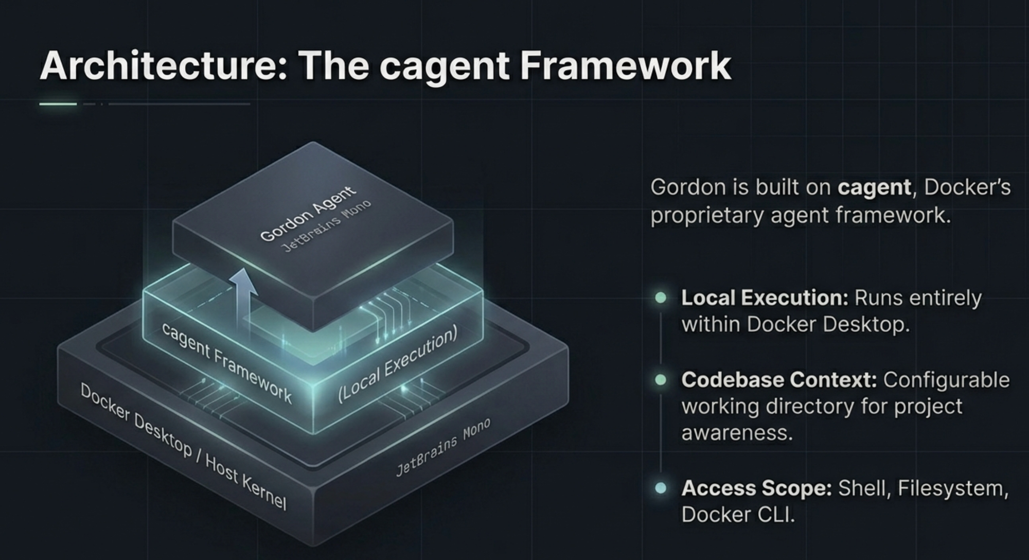 Gordon is Docker's purpose-built AI agent that runs locally inside Docker Desktop. Unlike general-purpose AI assistants, Gordon has direct access to your shell, filesystem, Docker CLI, and Docker's own knowledge base. Think of it as having a Docker-savvy engineer sitting inside your terminal.