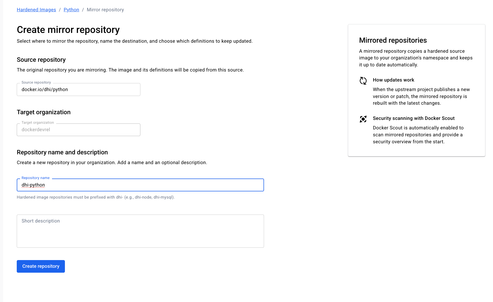 - Create a mirrored repository