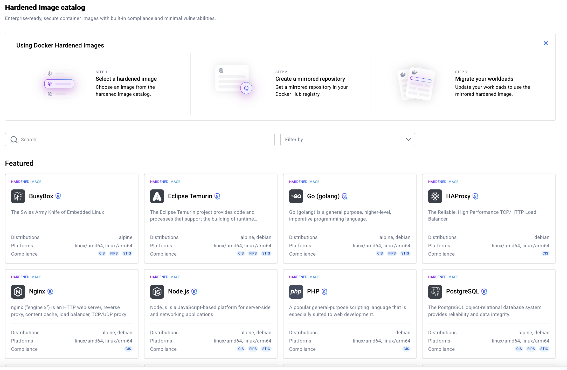 Browse the Docker Hardened image catalog here: https://hub.docker.com/orgs/<your-org>/hardened-images
