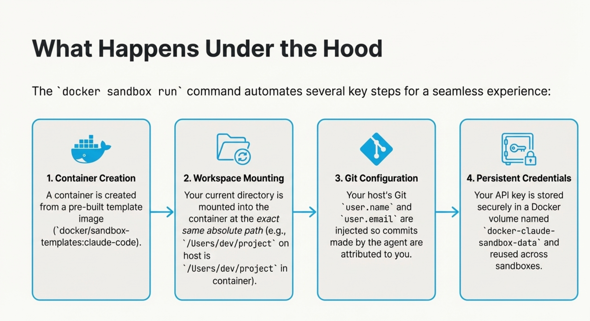 docker/sandbox-templates:claude-code - Workspace Mounting: Your current directory mounted at the exact same path