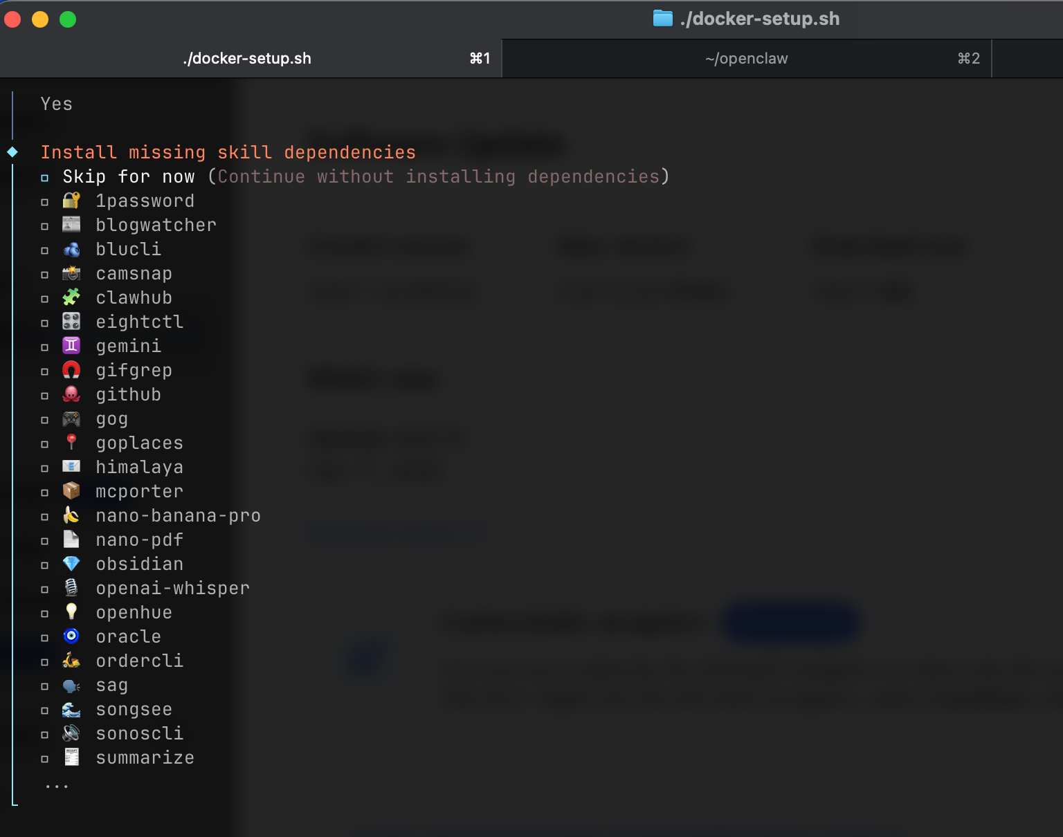 This downloads the entire OpenClaw codebase, including the Dockerfile, docker-compose.yml, and the docker-setup.sh script.