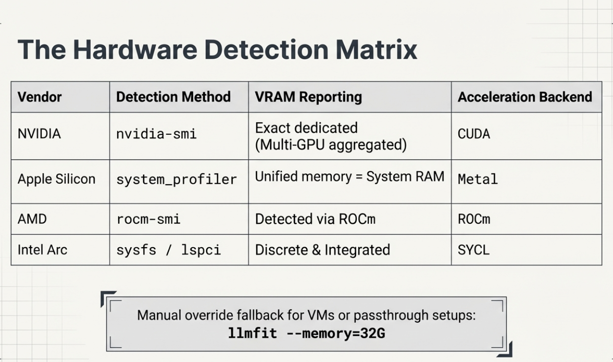 llmfit's hardware.rs module handles edge cases that trip up other tools: