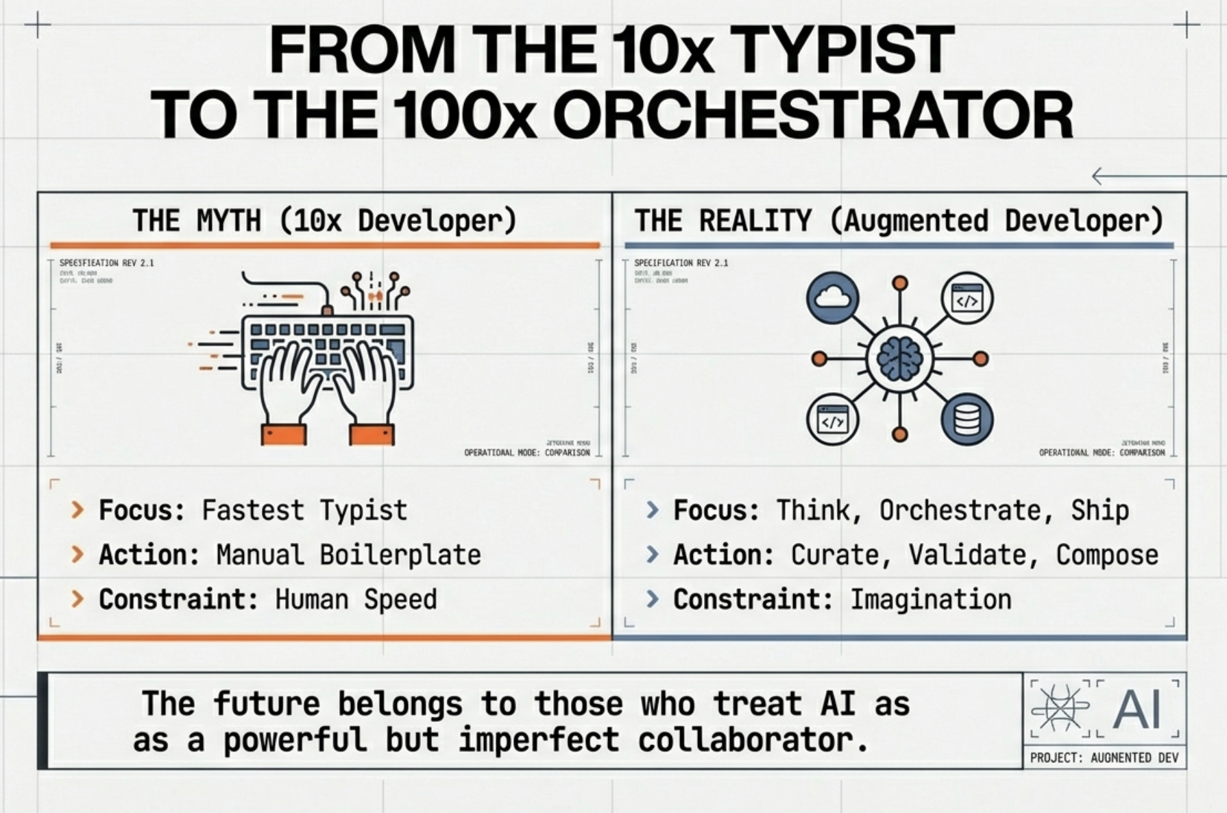 In 2023, we learned to talk to AI models. In 2024, we learned to chain them together. In 2025, we gave them real power. And now in 2026, a new archetype is emerging in the software world - the Augmented Developer.
