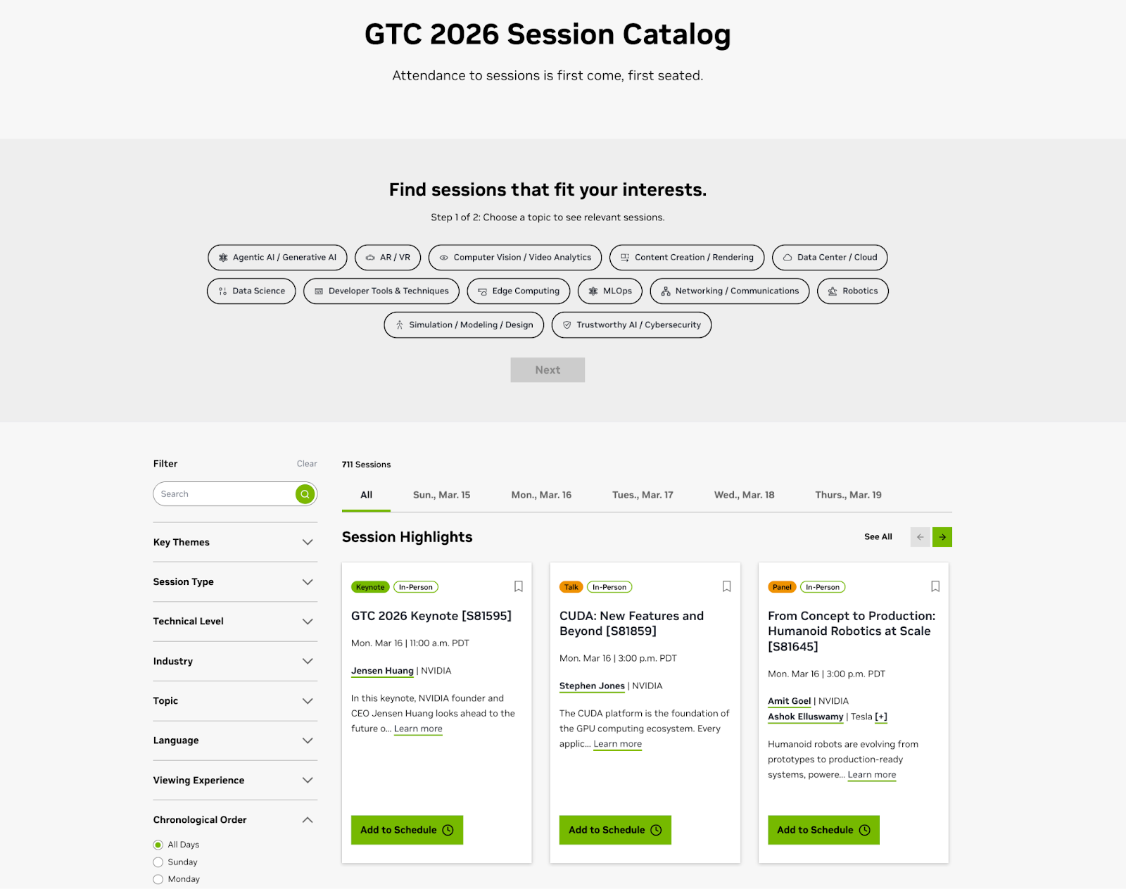 Browse the full GTC Session Catalog to start building your personalized agenda.