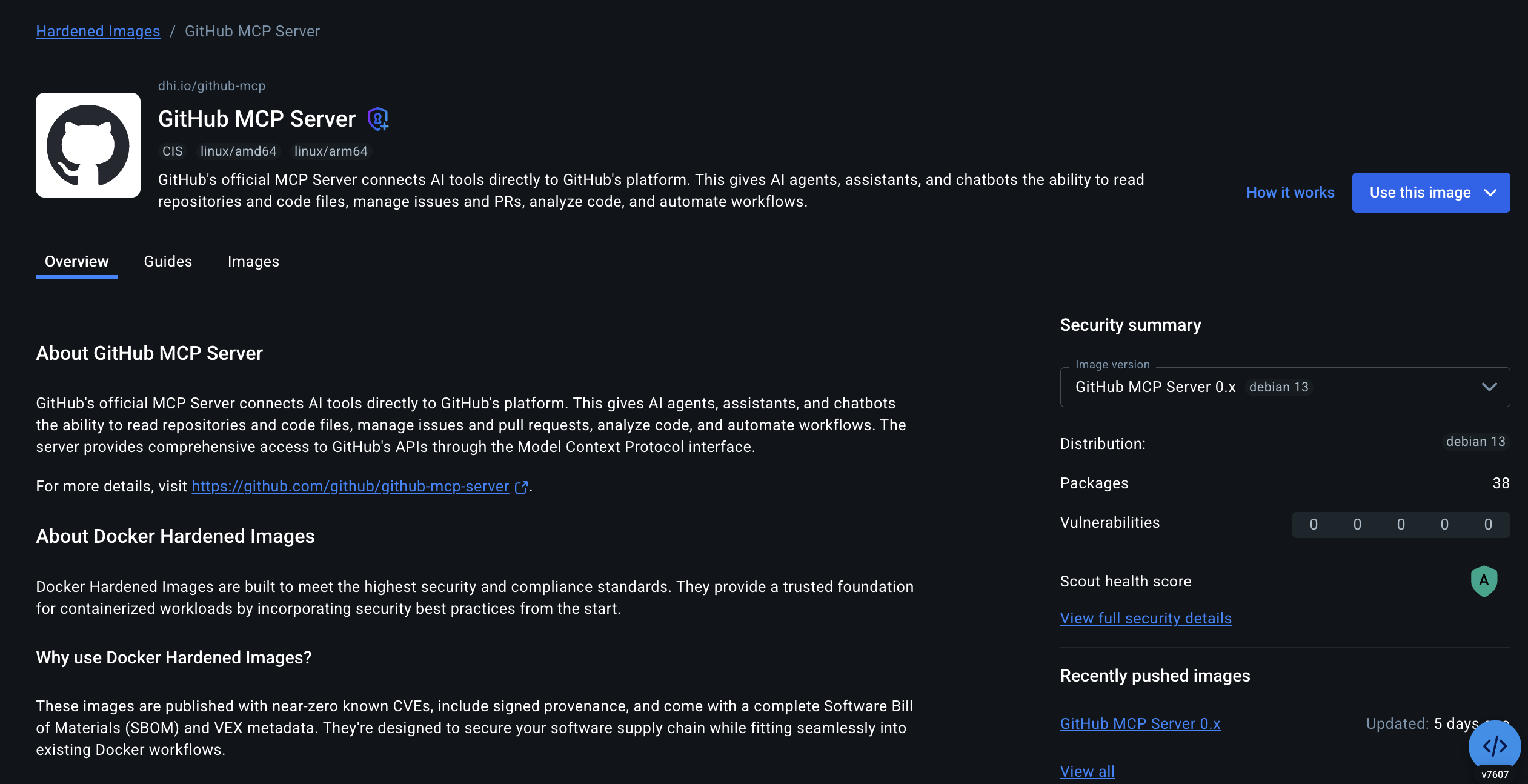 Docker applied the same hardening principles to MCP servers. Popular servers like MongoDB, Grafana, and GitHub now have hardened versions. Minimal footprints. Provenance attestations. Full transparency. This prevents data exfiltration. It blocks supply chain attacks in AI workflows. Your AI agents can be as secure as your applications.